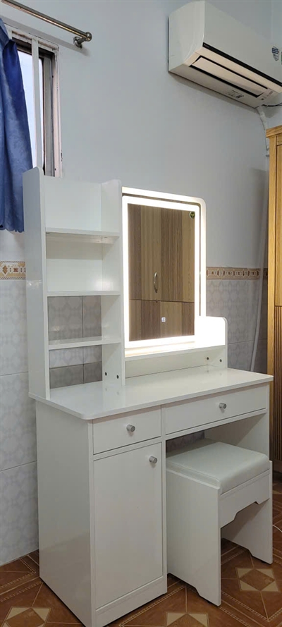 Bàn trang điểm đẹp, giá hợp lý, gương đèn led sáng, các ngăn kéo trơn tru, sử dụng rất tiện lợi cho việc trang điểm hằng ngày.