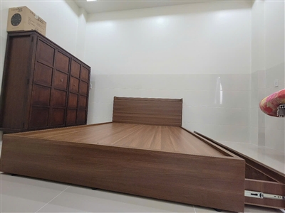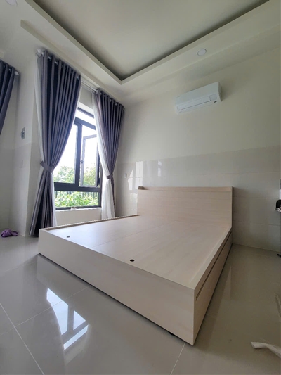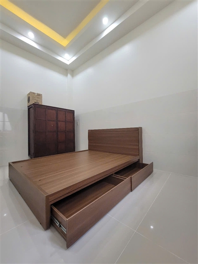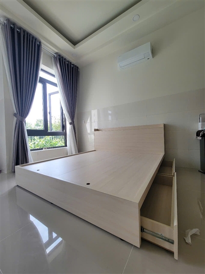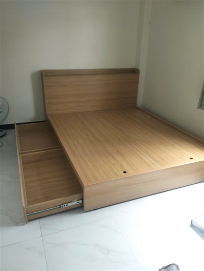 Giường được thiết kế hai hộc kéo lớn tiện lợi, lắp đặt linh hoạt, có thể gắn bên hông trái hoặc hông phải của giường đều được. Hộc kéo được làm kín đáo, gắn ray bi 3 tầng nên khi kéo ra sử dụng rất dễ dàng, mượt mà và êm ái. Hộc kéo dùng để đựng quần áo, đồ dùng cá nhân mà không lo bụi bẩn hay côn trùng xâm nhập.