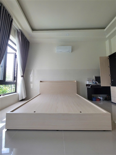 Khung giường được thiết kế dạng hộp, thành giường cao hơn vạt giường giúp nệm không bị xê dịch, vừa vặn với giường.