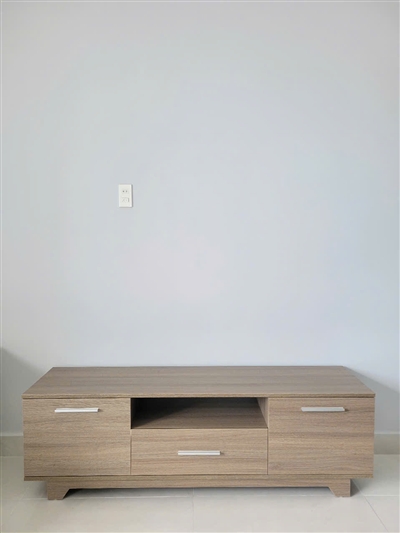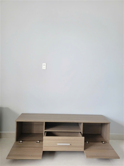 Kệ tivi thiết kế hiện đại, để phòng khách nhìn sang trọng hẳn lên. Kệ nhiều hộc kéo, để được cả đầu máy, loa, đồ trang trí, rất gọn gàng.