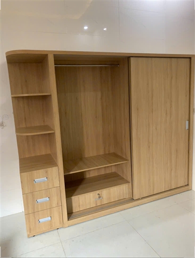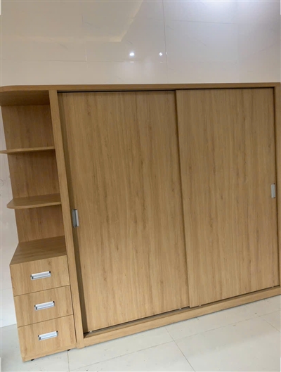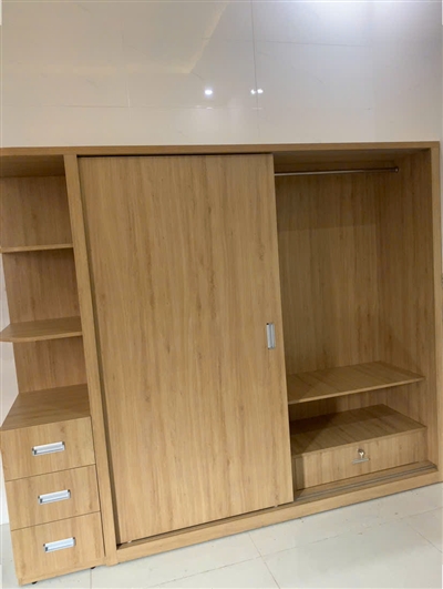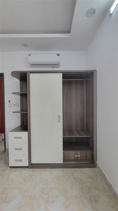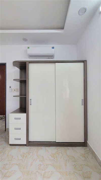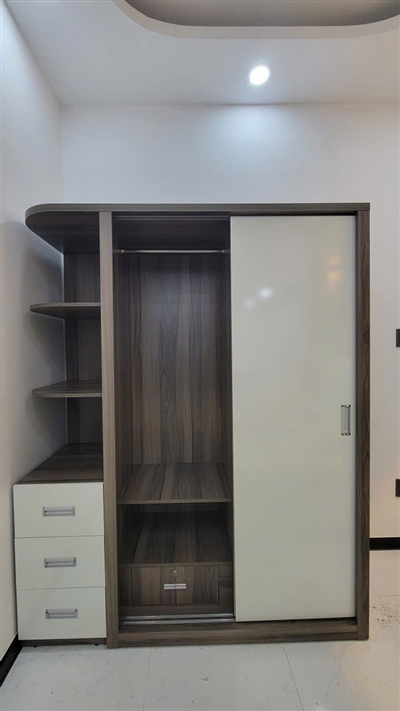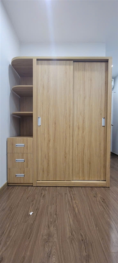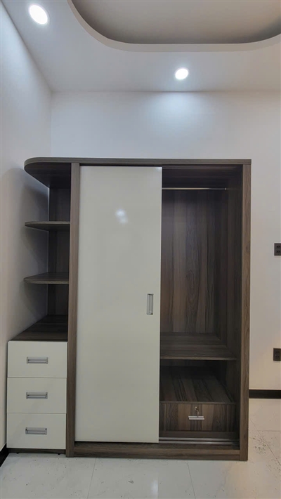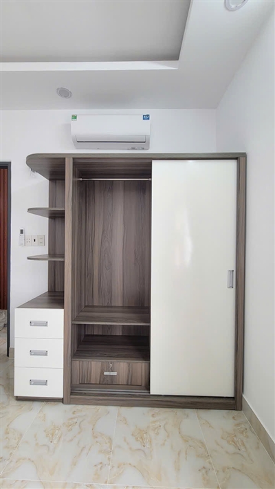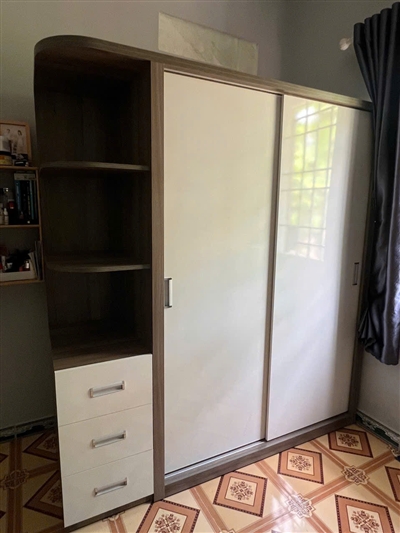 Tôi chọn mẫu cửa trượt, mở ra không chiếm diện tích phòng, tủ có kệ trang trí tha hồ để đồ, thợ làm đúng kỹ thuật, rất ưng ý