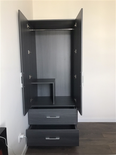 Tủ quần áo TQA-TP01 có thiết kế 2 cánh mở và 2 hộc kéo lớn bên ngoài