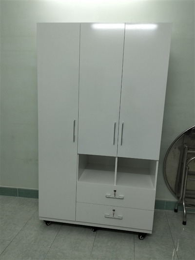Tủ quần áo TQA-TP19 có thiết kế 3 cánh mở, 2 hộc kéo lớn kèm kệ trang trí bên ngoài rất tiện lợi và thời trang, tô điểm cho căn phòng thêm gọn gàng, xinh xắn.