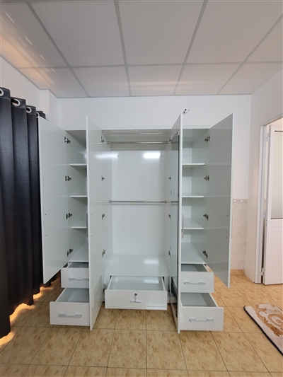 Tủ quần áo TQA-TP20 có thiết kế 4 cánh mở và 4 hộc kéo ngoài