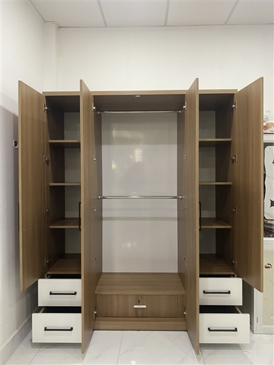 Tủ còn có 4 hộc kéo ngoài đa năng có thể dùng để lưu trữ quần áo hoặc nhiều vật dụng khác nhau một cách tiện lợi, sạch sẽ.