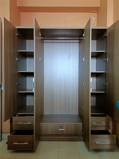 Tủ được thiết kế 2 bên tủ là 2 khoang đơn có nhiều ngăn trống di động có thể điều chỉnh để chăn, màn, quần áo xếp gọn, túi xách, giày dép…rất tiện lợi và gọn gàng.