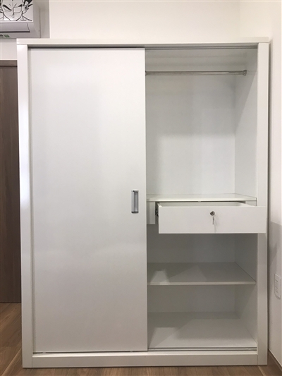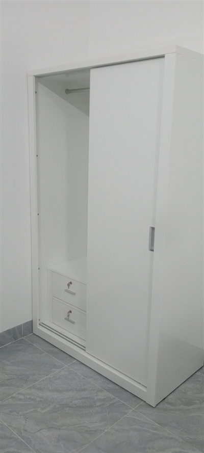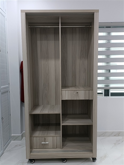 Khoang lớn thứ 2 bên trên cũng có 1 thanh treo inox dùng để treo áo thun , áo sơ mi, tiếp đến là một hộc kéo treo có ổ khóa để cất giữ nữ trang, đồng hồ, hoặc những vật dụng nhỏ xinh… .Bên khoang này còn có 2 ngăn trống có thể để quần áo gấp gọn, nón, túi xách, giày dép, khăn tắm ….rất tiện lợi và ngăn nắp