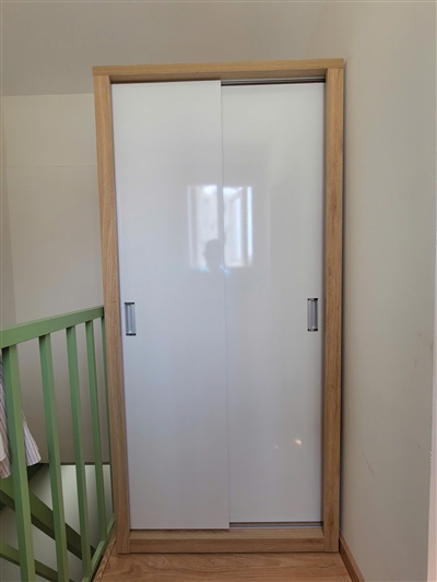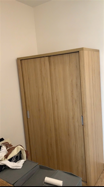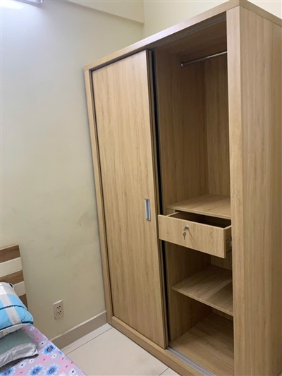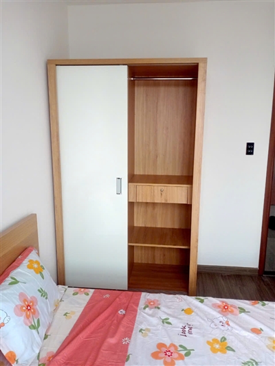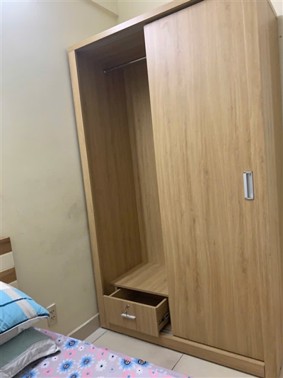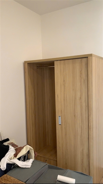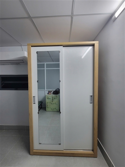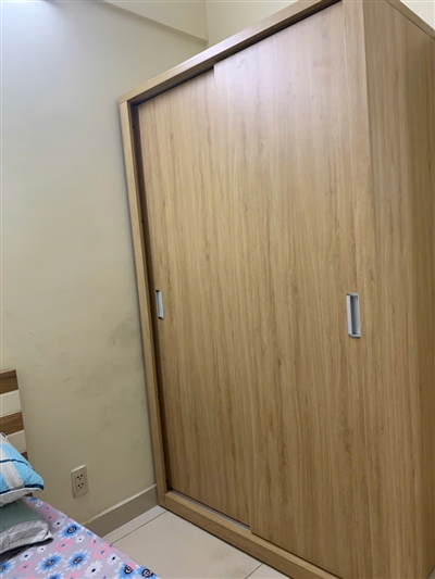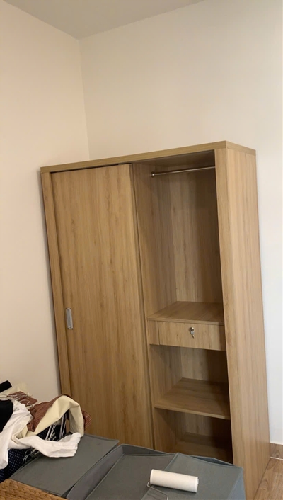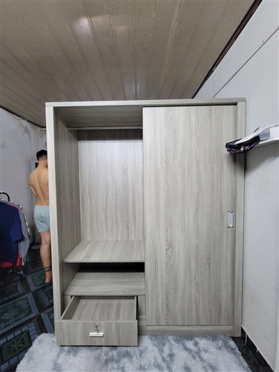 Phòng mình hơi hẹp nhưng 2 anh thợ vẫn hỗ trợ tìm cách lắp tủ ok hoàn thiện nhất. Màu tủ đẹp, thiết kế hợp lí.
