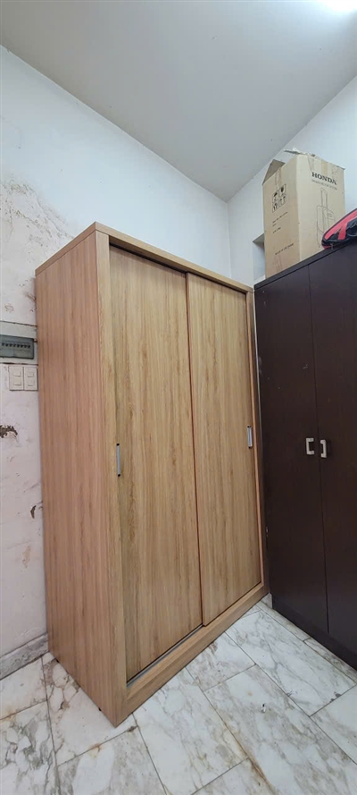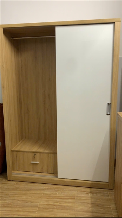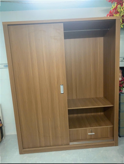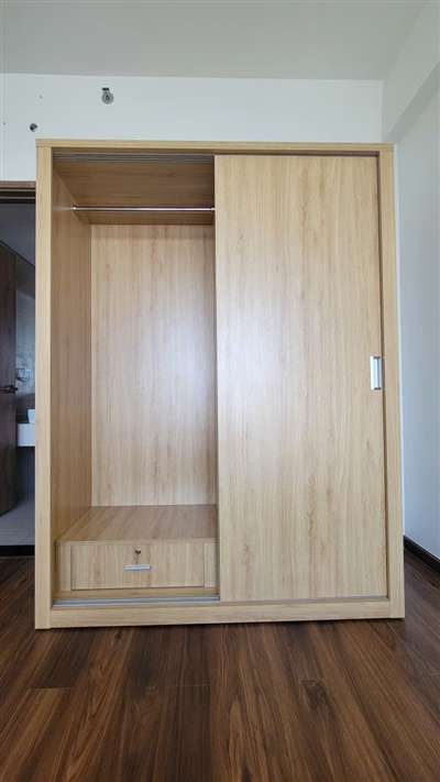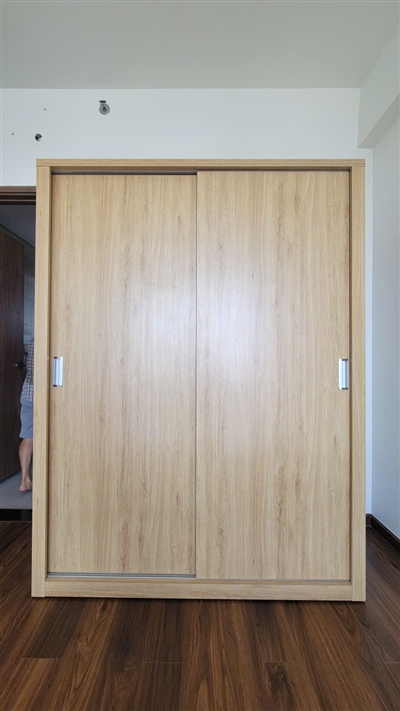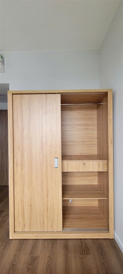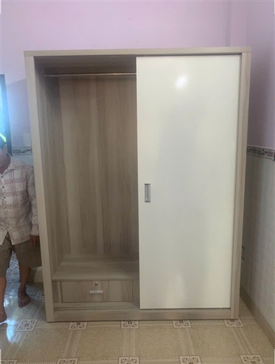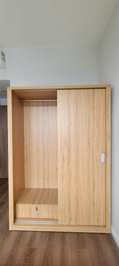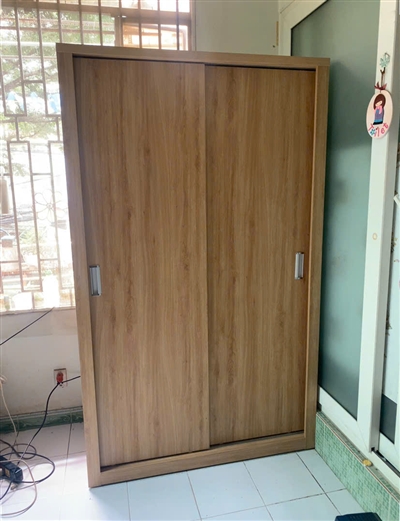 Mình nhận tủ xong rất ưng. Tủ thiết kế hiện đại cửa lùa, rất hợp phòng ngủ nhỏ.