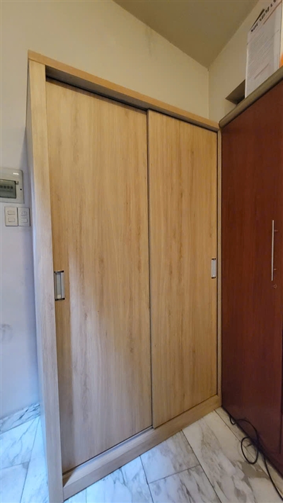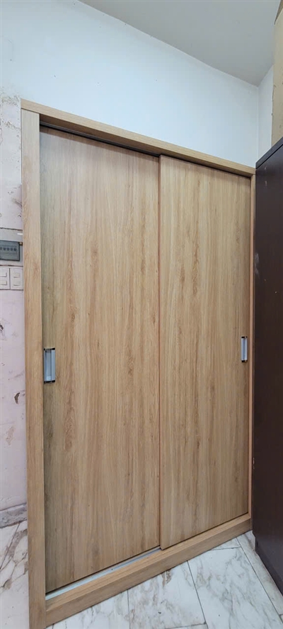 Lắp cửa lùa xong thấy nhà nhìn hiện đại hơn. Ray trượt chắc, tủ chắc lắm nha