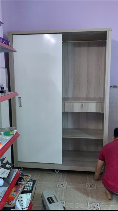 tủ đẹp, dày dặn, các anh lắp ráp nhiệt tình, cửa lùa tiện lợi