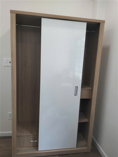 Tủ MDF cửa lùa nhìn hiện đại, kéo rất êm, nhân viên lắp đặt nhanh và nhiệt tình. Mình khá hài lòng, tủ chắc chắn, ray trượt mượt, đóng mở nhẹ nhàng.