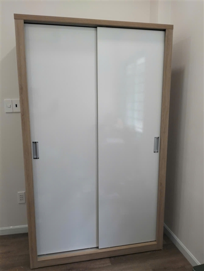 Mình nhận tủ xong rất ưng. Tủ thiết kế hiện đại cửa lùa, rất hợp phòng ngủ nhỏ.