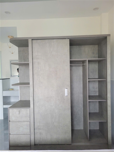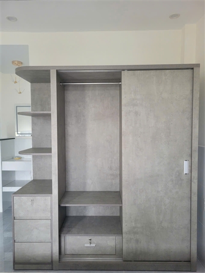 - Bên ngoài tủ có một kệ trang trí, là nơi lý tưởng để trưng bày những vật dụng trang trí nhỏ nhắn, tạo điểm nhấn và tăng thêm vẻ đẹp cho không gian phòng ngủ.