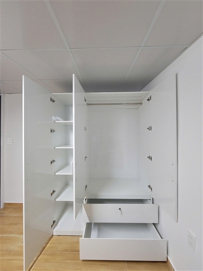- Sử dụng chất liệu gỗ công nghiệp MDF phủ melamine, tăng cường độ bền, giữ cho tủ luôn mới mẻ và bền bỉ.