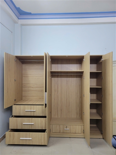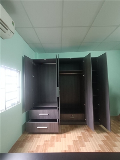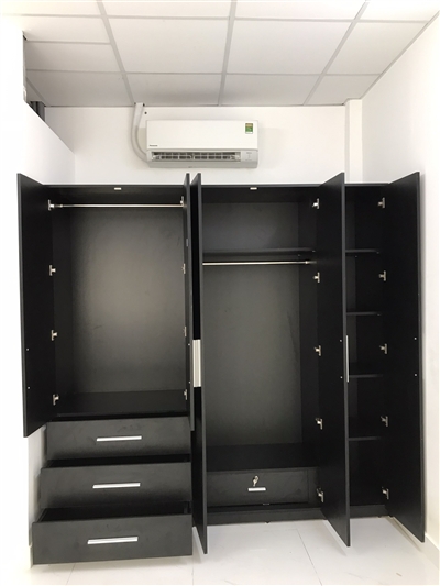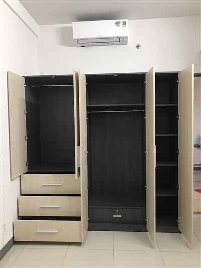 Tủ còn thiết kế bên trong có các ngăn trống dùng để cất giữ vali, quần áo xếp gọn, túi xách, giày dép, khăn tắm rất gọn gàng,ngăn nắp.