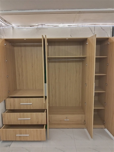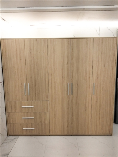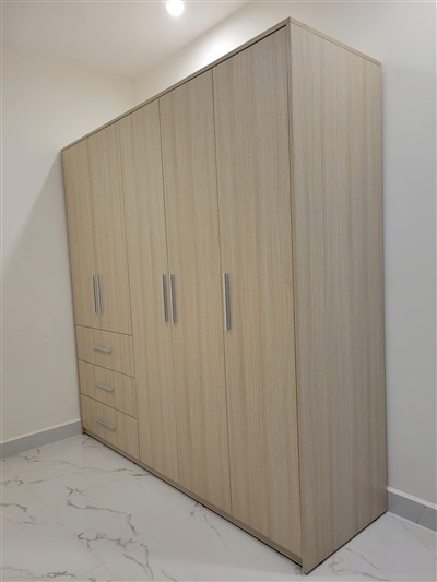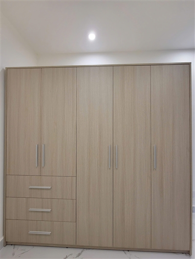 Tủ áo TQA-TP29 được phối màu gỗ đậm, nhạt độc đáo với thiết kế gồm 5 cánh mở có kích thước dài, ngắn khác nhau. Điểm nhấn là 3 hộc kéo lớn bên ngoài tiện dụng, đa năng chứa rất nhiều quần áo và các vật dụng khác khi cần thì lấy ngay mà không cần phải mở cánh tủ.