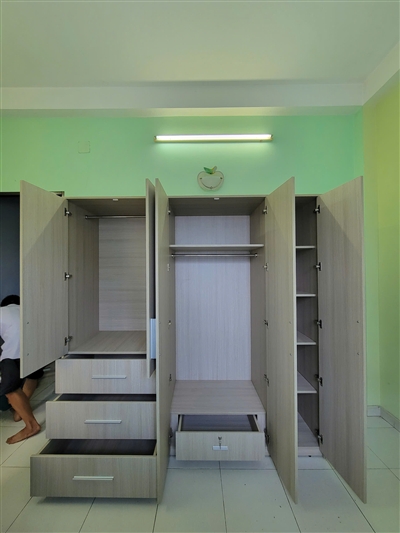 Tủ rộng lắm mn. Cửa tủ đóng mở êm ru, thợ làm việc chăm chỉ, rất dễ thương.