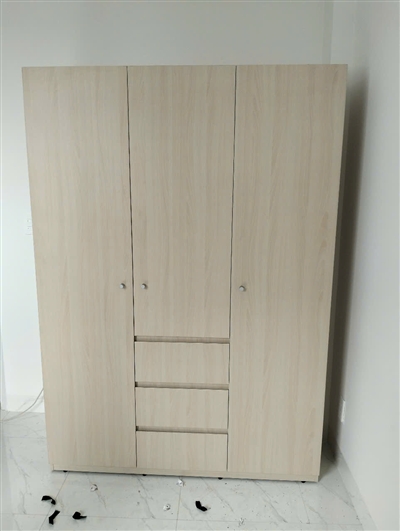 Tủ áo thanh lịch, thời trang có thiết kế 3 cánh mở với kích thước dài ngắn khác nhau.