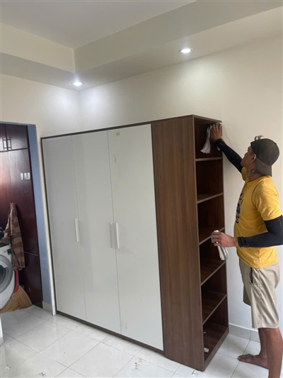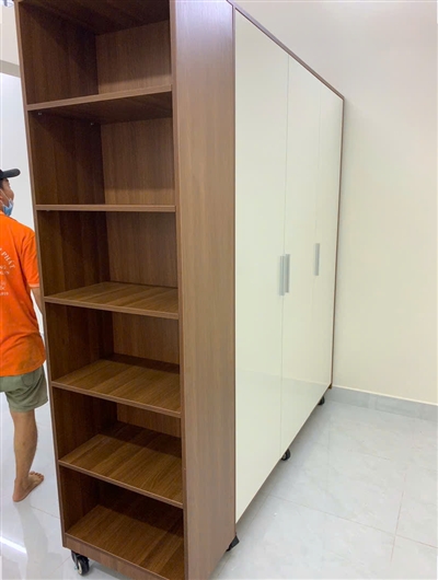 Tủ gỗ mdf dày dặn, tủ đóng khít khao thẩm mỹ. Mẫu mã đẹp, đơn giản tùy chỉnh theo ý khách hàng. Mấy anh lắp đặt chu đáo, vận chuyển lên tầng 2, vệ sinh tủ sạch sẽ dùm mình luôn, cảm ơn shop