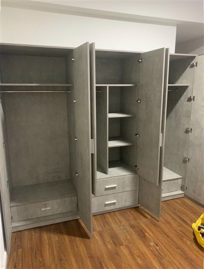 Đúng hàng, giao nhanh. Các anh thợ ráp tủ rất cẩn thận, canh lề thẳng tắp, tầm 2-3 tiếng hơn là xong. Hoàn thiện tủ tốt.