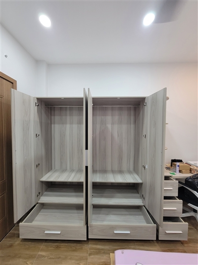 Tủ siêu đẹp, có nhân viên đến lắp đặt cho mình luôn. Rộng rãi thoải mái, mình thích kiểu tủ này nhưng tìm mãi mới được. Giá rất ok