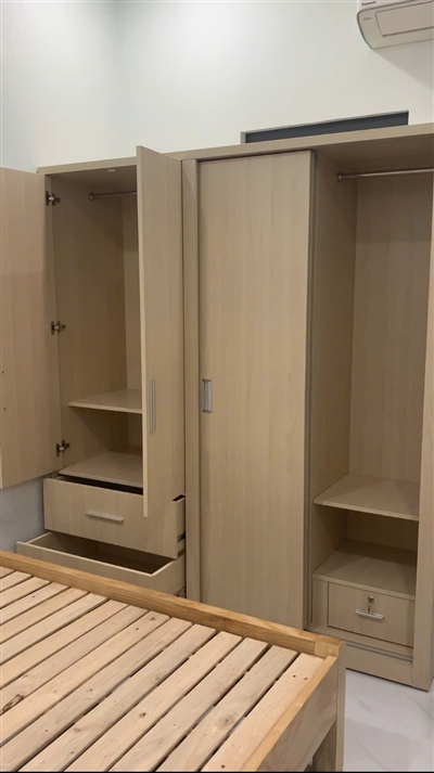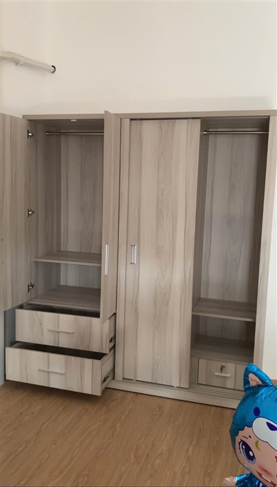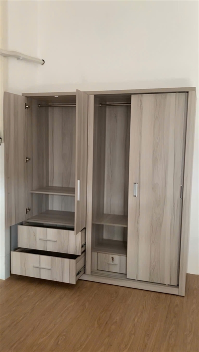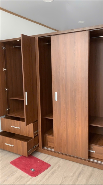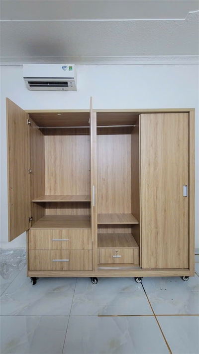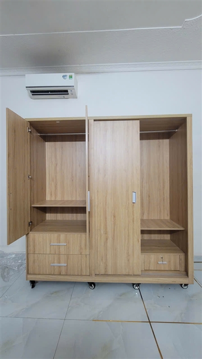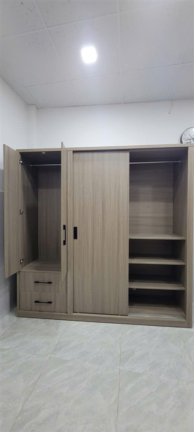 - Tủ quần áo này được thiết kế đặc biệt với cửa lùa kết hợp cửa mở, mang lại sự linh hoạt và tiện ích cho người sử dụng. Bạn có thể dễ dàng sử dụng các khoang lưu trữ mà không gặp trở ngại từ cửa lùa hay cửa mở.