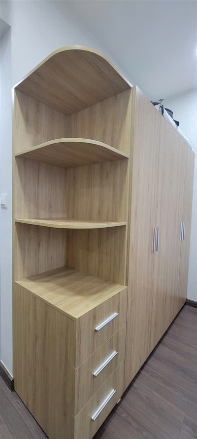 Tủ quần áo kết hợp kệ trang trí TQA 58 là sự kết hợp tinh tế của gỗ công nghiệp MDF phủ melamine, đảm bảo chất lượng cao với ngoại hình sang trọng và độ bền bỉ theo thời gian.