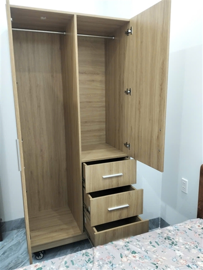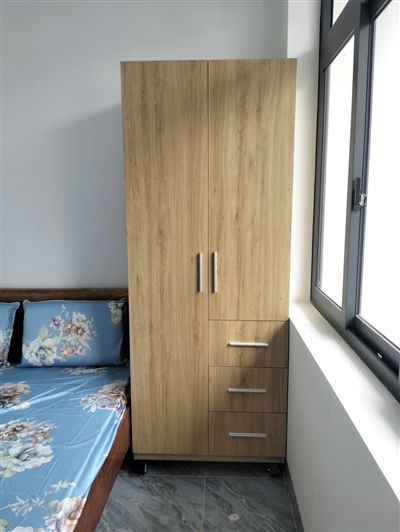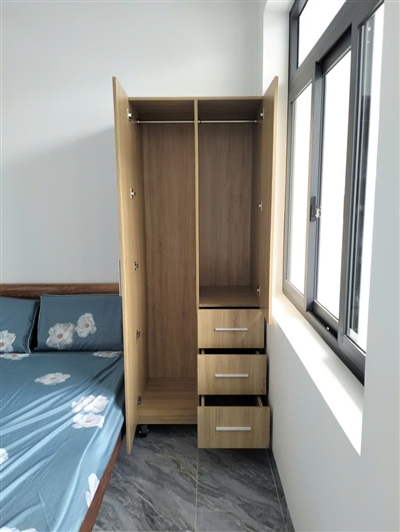 Mình đặt tủ cho phòng ngủ chung cư. Thiết kế đơn giản nhưng nhìn hiện đại, giúp phòng gọn gàng hơn hẳn.